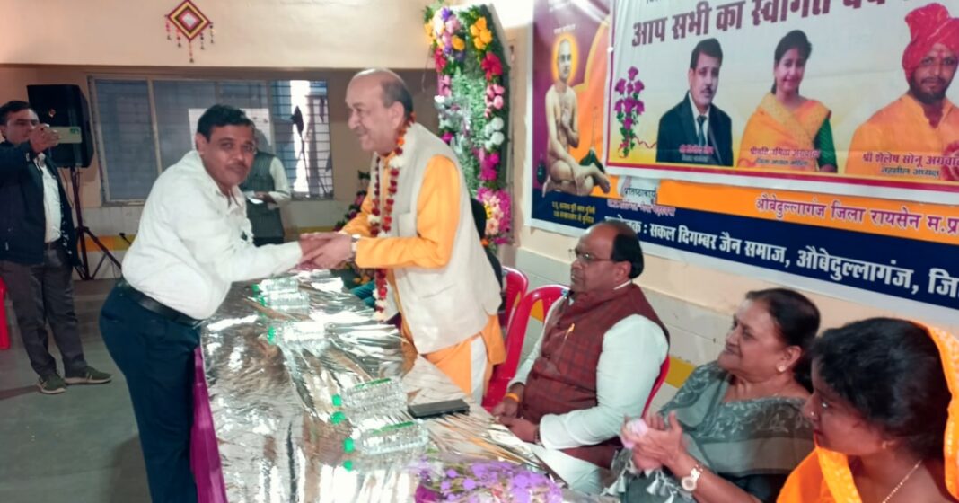 वैश्य महासम्मेलन मप्र जिला रायसेन के कैलेंडर-2024 का विमोचन एवं कार्यकताओ की वृहद बैठक का आयोजन जैन धर्मशाला औबेदुल्लागंज में हुआ। जिसमें प्रदेश उपाध्यक्ष ओपी बसंल व समाज के वरिष्ठ अशोक मित्तल, जिला प्रभारी राजेन्द्र अग्रवाल , विधा अग्रवाल के मुख्य आतिथ्य एवं जिला अध्यक्ष विनोद जैन आरएनजी की अध्यक्षता में सभी ने मिलकर कैलेंडर का विमोचन किया। इस अवसर पर वैश्य महासम्मेलन मप्र के जिलाध्यक्ष विनोद जैन ने बताया कि प्रदेश संगठन से जारी होने वाले इस कैलेंडर को प्रत्येक सदस्य को निशुल्क वितरण होना है। उसके लिए प्रदेश संगठन का आभार व्यक्त किया। साथ ही इस हेतु प्रदेश व संभागीय पदाधिकारियों का संगठन के जिला पदाधिकारियों ने शाल-श्रीफल से सम्मान भी किया।