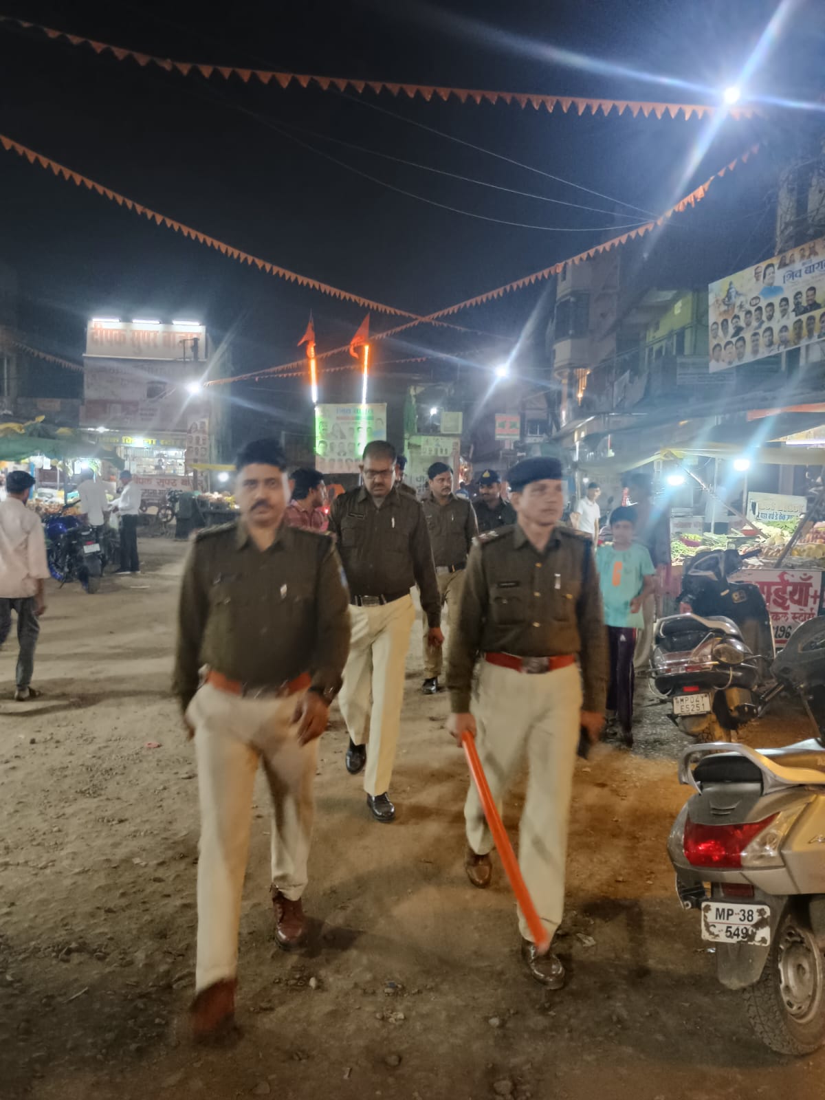 सतलापुर की गलियों में पुलिस का पैदल मार्च-